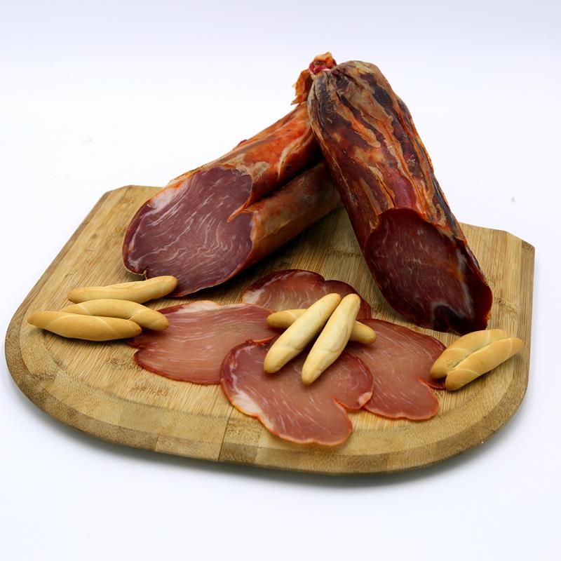 Lomo de cerdo, sal, ajo, pimentón, orégano, Azúcares (Dextrosa, Azúcar), Proteínas de origen animal, dextrina, fosfatos (E-450i E-451i) isoascorbato sódico (E-316).